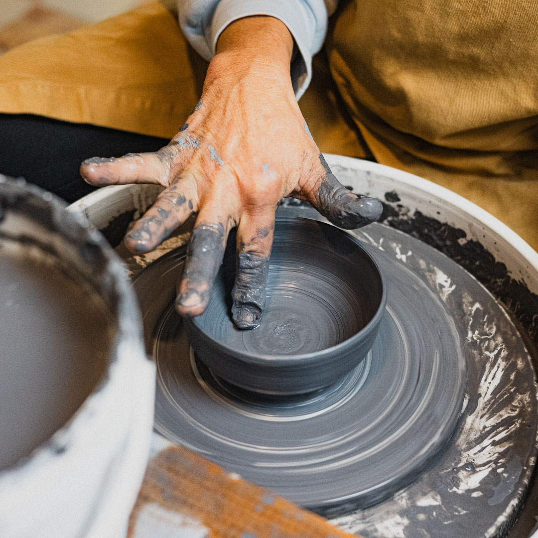 Entdecke die Kunst des Töpferns an der Drehscheibe.
